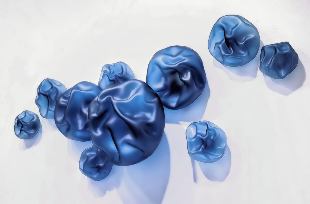 My work is primarily sculptural glass that explores the material’s inherent fluid like properties when hot. I focus on creating organic forms rich with texture and undulating curves. These pieces are achieved with both careful intention and a healthy dose of play. “