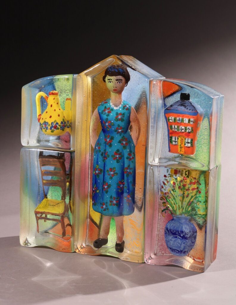 I tend to follow my interests in choosing a subject. I am fascinated with the early modern movement within Russia, constructivism and cubism. Within each subject I find a relationship between women and the process of making art. The intellectual movement of the time as it relates to the decorative and domestic arts of the period often reflects the influence of women artists. I then create a portrait that captures this expression and from that I find many fundamental truths about what it means to be a woman making art.