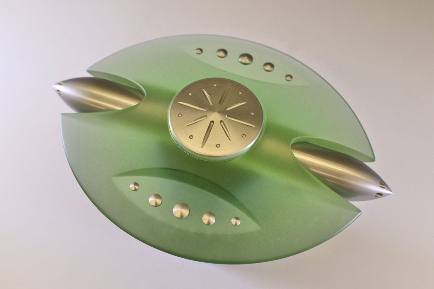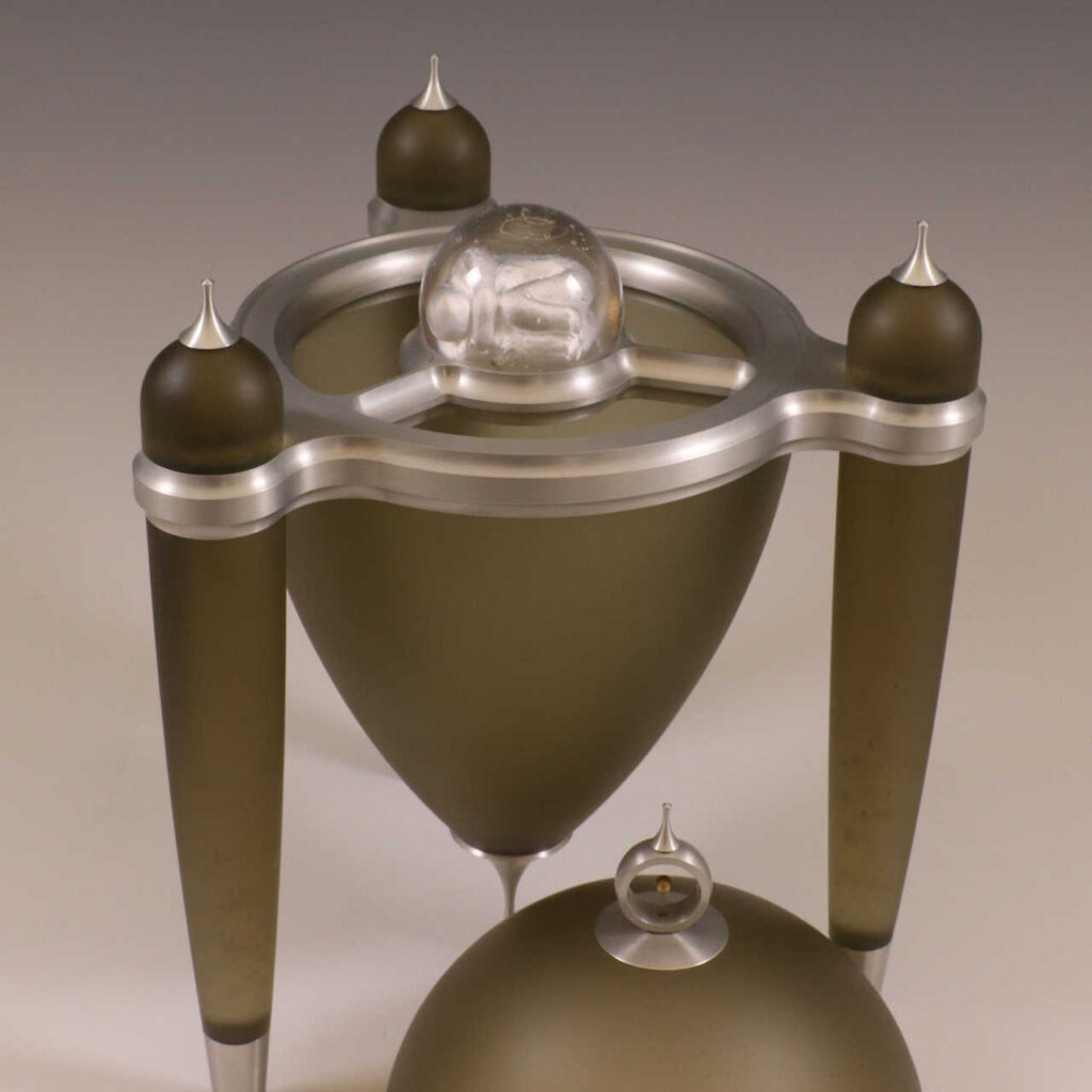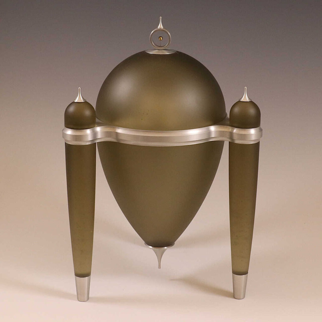 Prior to pursuing a career as an artist, John enjoyed a 35-year career in the aerospace industry, starting as a machinist and ending as a design engineer. A large portion of those years were spent hand-building instruments that now reside in the Hubble Space Telescope. He draws heavily on his knowledge and experience in making scientific instruments while exploring non-functional objects as an artist. A craftsman at heart, he designs and fabricates many of the tools and machines he uses in his craft. John has also attended classes at Pilchuck Glass School and The Corning Museum of Glass.